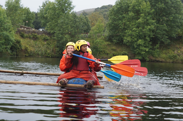 Then, much to their glee, the children were challenged to switch places on the raft which meant only one thing - getting really wet!